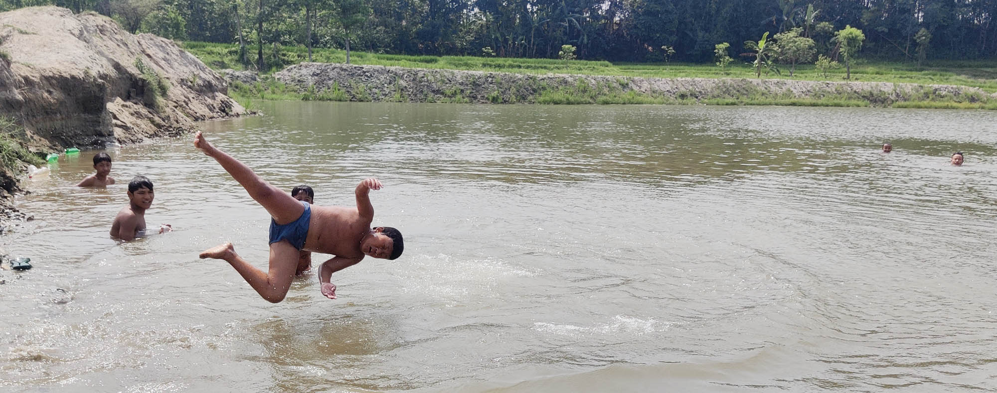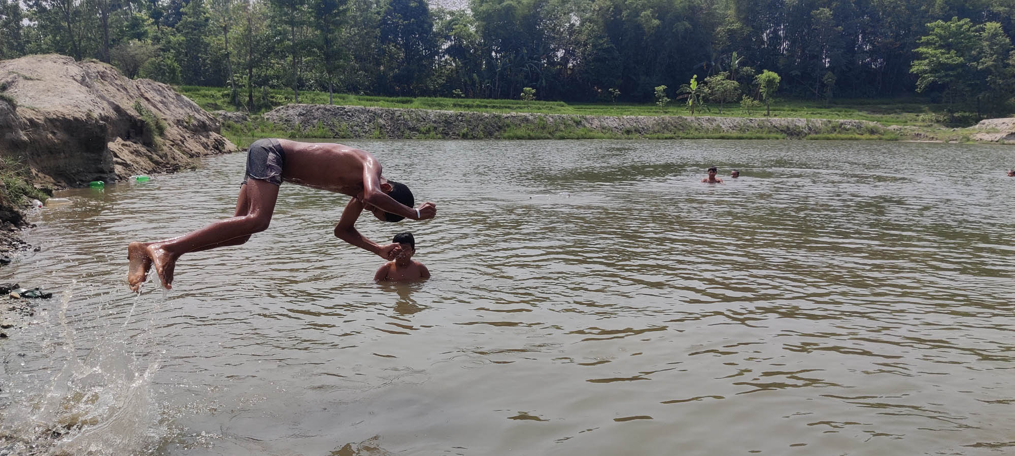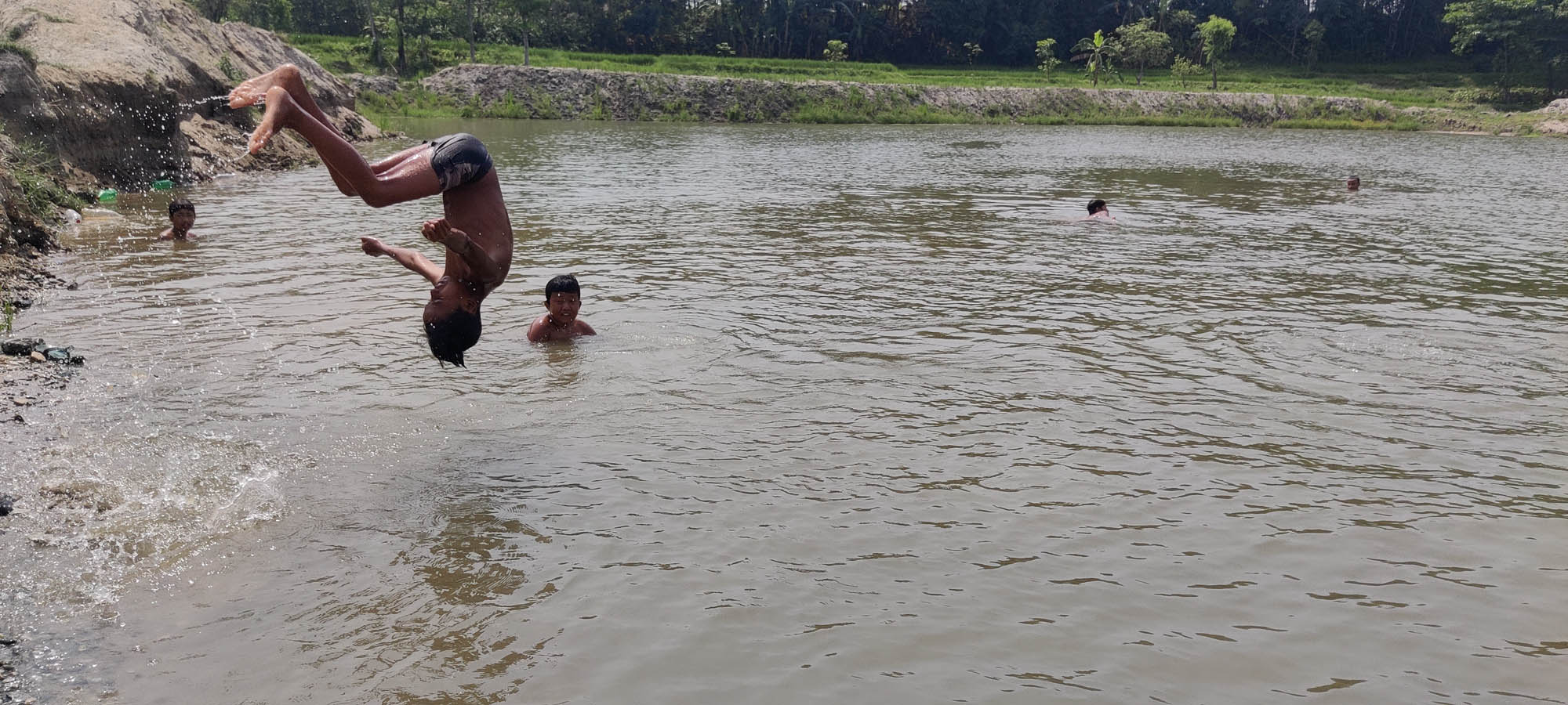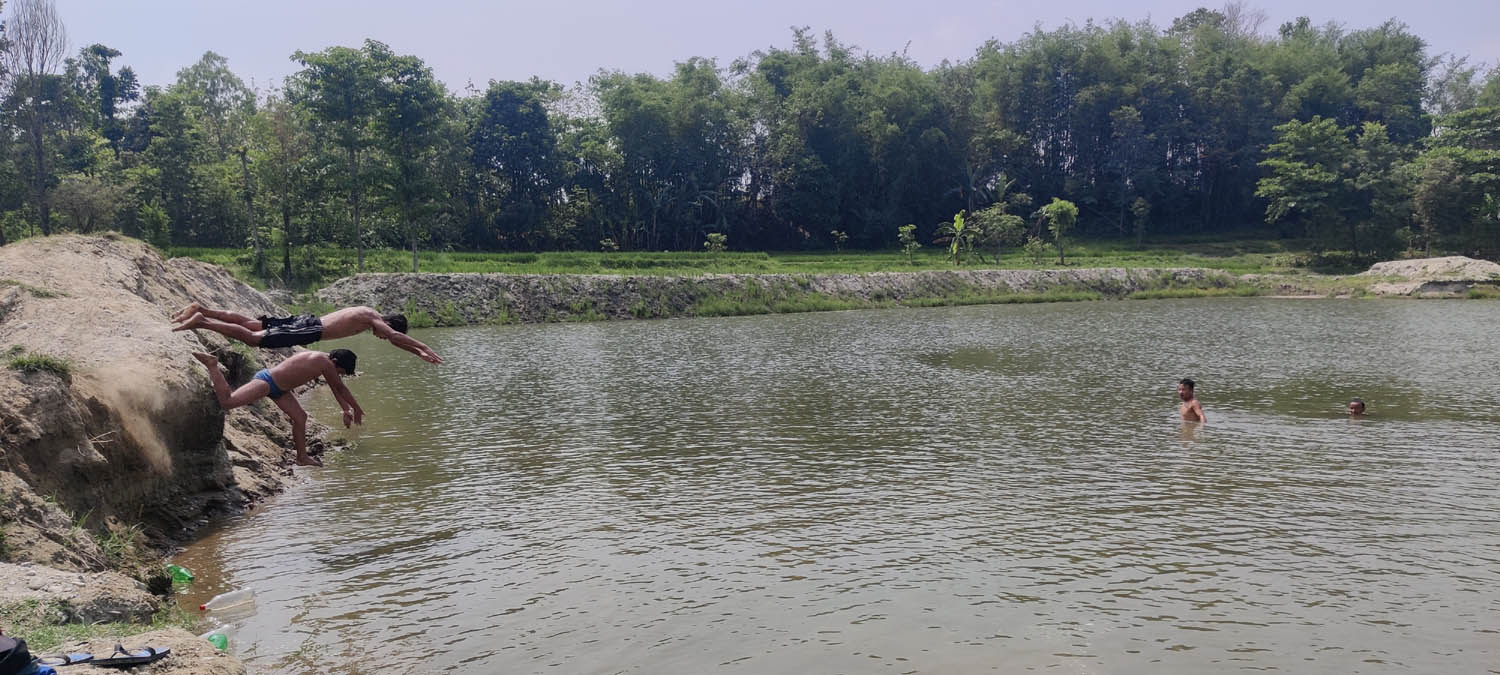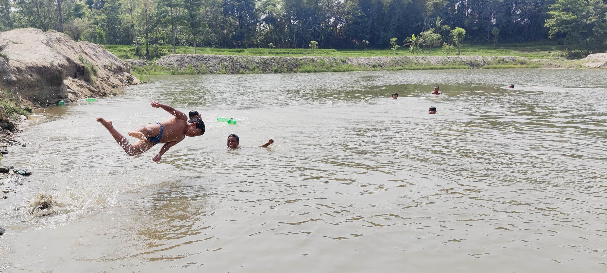 महामारीको रुपमा फैलिएको कोरोना संक्रमण रोकथाम र नियन्त्रण गर्न जिल्ला प्रशासन कार्यालयले मोरङमा निषेधाज्ञा गरेको छ । तर, मोरङको कानेपोखरी गाउँपालिका ४ डाँसखोला नजिक रहेको पोखरीमा पौडी खेल्ने बढेका छन् । अहिले यहाँका बालवालिकादेखि युवाका लागि पनि गर्मी छल्ने माध्यम खोला र पोखरी बनेको छ ।