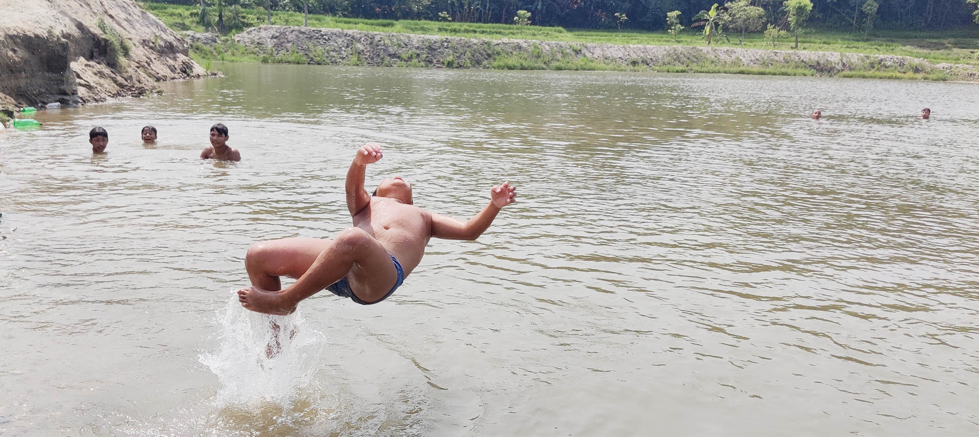 महामारीको रुपमा फैलिएको कोरोना संक्रमण रोकथाम र नियन्त्रण गर्न जिल्ला प्रशासन कार्यालयले मोरङमा निषेधाज्ञा गरेको छ । तर, मोरङको कानेपोखरी गाउँपालिका ४ डाँसखोला नजिक रहेको पोखरीमा पौडी खेल्ने बढेका छन् । अहिले यहाँका बालवालिकादेखि युवाका लागि पनि गर्मी छल्ने माध्यम खोला र पोखरी बनेको छ ।