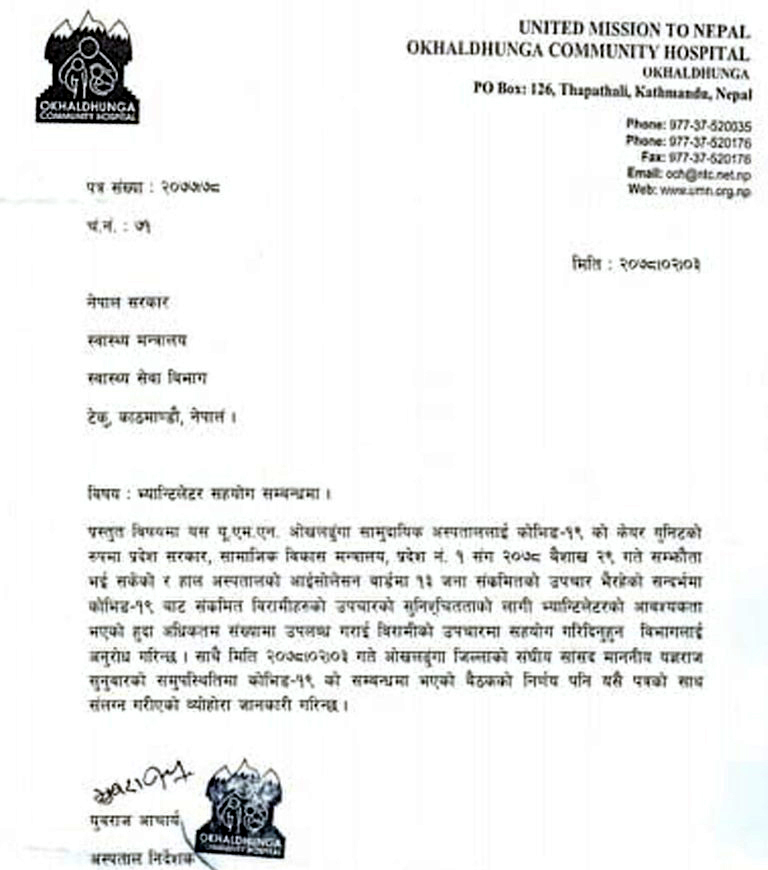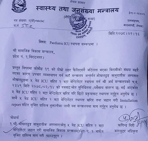 रुम्जाटार अस्पतालले भने आईसियु र भेन्टिलेटरको माग गरेकै थिए । स्वास्थय मन्त्रालयका परिपत्र फेरिएको विषयमा प्रवक्ता डा. कृष्णप्रसाद पौडेलले त्यसबारे आफू अनभिज्ञ भएको बताए।