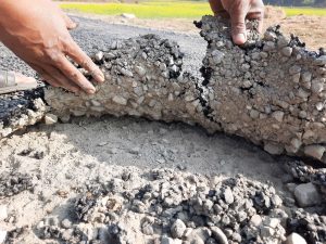स्थानिय खडग श्रेष्ठको घर अगाडी शुक्रबार साझ गरेको कालोपत्रे विहान उप्किएको छ । सडकको बेस निर्माणमा कमसल कच्चा पदार्थ बढी प्रयोग गरेको तथा रोलरको कम प्रयोग गरेका कारण समस्या देखिएको स्थानिय बताउँछन् । अब सडकको गुणस्तर सुधारका लागि पुनः बेसमा रोलर लगाएर काम गर्न आवश्यक देखिएको स्थानियको भनाई छ ।
