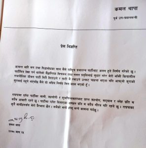 थापाद्धारा जारी प्रेस विज्ञप्ती: