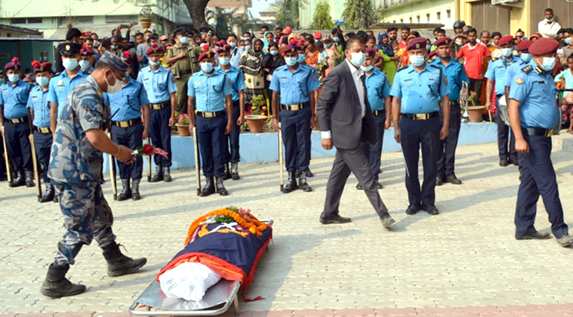 अस्पताल परिसरमै प्रहरी अधिकृत तथा जवानहरुले सलामीसहित श्रद्धाञ्जली दिउका थिए । हातमा खादा र पुष्पगुच्छा बोका सबैको आँखामा आँसु भरिएको थियो ।