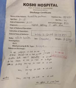 प्रधानको शुक्रबार राती ८ बजे नर्मल डेलिभरी भएर छोरीलाई जन्म दिएकी थिइन् । ‘गाइनो वार्डमा छोरीलाई जन्म दिएपछि नवजाजत शिशुले दिशा मुखमा परेको रहेछ भन्दै उपचार गर्न लगिएको थियो । राती ११ बजे मृत्यु भएको खबर आयो । विहान घर जाने बेलामा डिस्चार्ज पेपरमा मरेको बच्चा जन्मिएको ‘स्टील बन्थ’ भनेर लेखिएको छ,’ श्रीमान दिपेन्द्र श्रेष्ठले भने, ‘डिस्चार्ज पेपरमा कसरी यस्तो लेखियो भनेर बुझदा अस्पताल प्रशासनले कसैलाई भेटन दिएको छैन । अस्पतालको स्वास्थ्यकर्मीहरूको लापरबाही रहेको छ ।’ डिस्चार्ज पेपरमा कसरी मरेको बच्चा जन्मिएको भन्ने विषयमा अस्पतालका चिकित्सक र प्रशासनसँग बुझन खोज्दा अहिलेसम्म भेटन नदिएको उनीहरूको भनाई छ ।