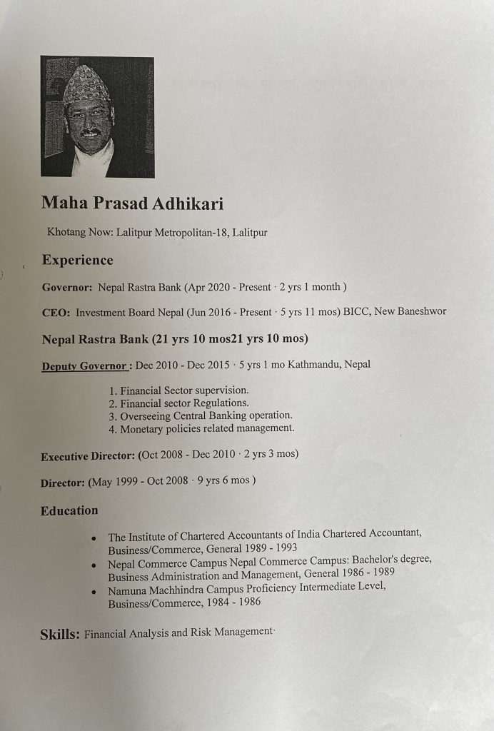 पाठ्यक्रम विकास केन्द्रको यो पत्रले गभर्नर महाप्रसाद अधिकारीको शैक्षिक योग्यता स्नातक तहसम्म मात्रै रहेको पुष्टि हुन्छ । तर, उनले सरकारलाई समेत गुमराहमा राखेर गभर्नर पदमा नियुक्ती लिएका छन् ।