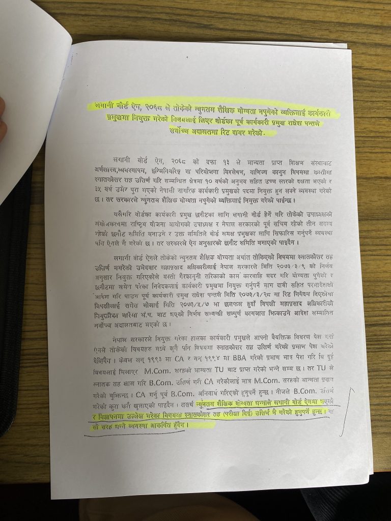 अधिकारीको शैक्षिक योग्यतालाई लिएर मुद्दा