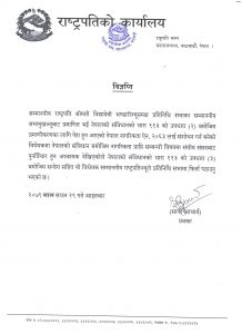 . राष्ट्रपतिले नेपालको संविधानको धारा ११३ को (३) अनुसार पुनः प्रतिनिधिसभामै फिर्ता गरेको राष्ट्रपति कार्यालयले जनाएको छ । उक्त विद्येयक प्रतिनिधिसभा र राष्ट्रियसभाबाट पारित गरेर सभामुख सापकोटाले प्रमाणीकरण गरी राष्ट्रपतिसमक्ष पठाएको थियो ।
