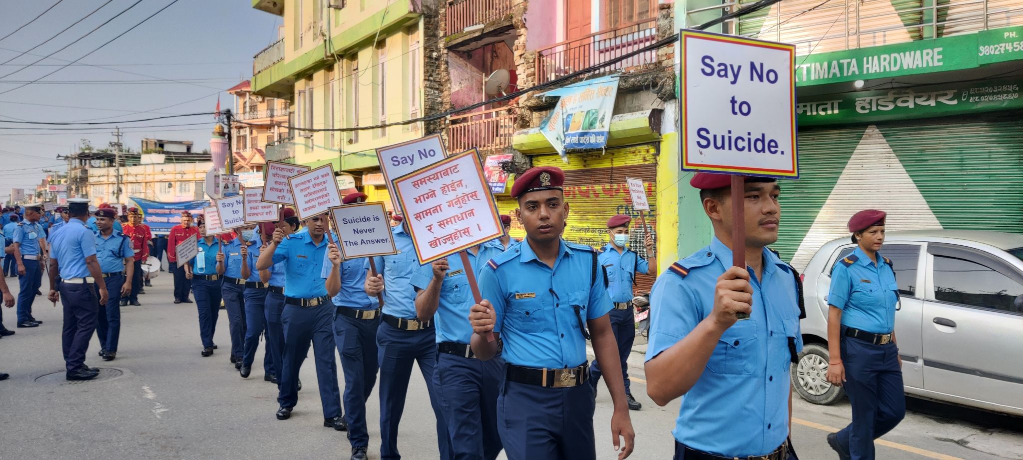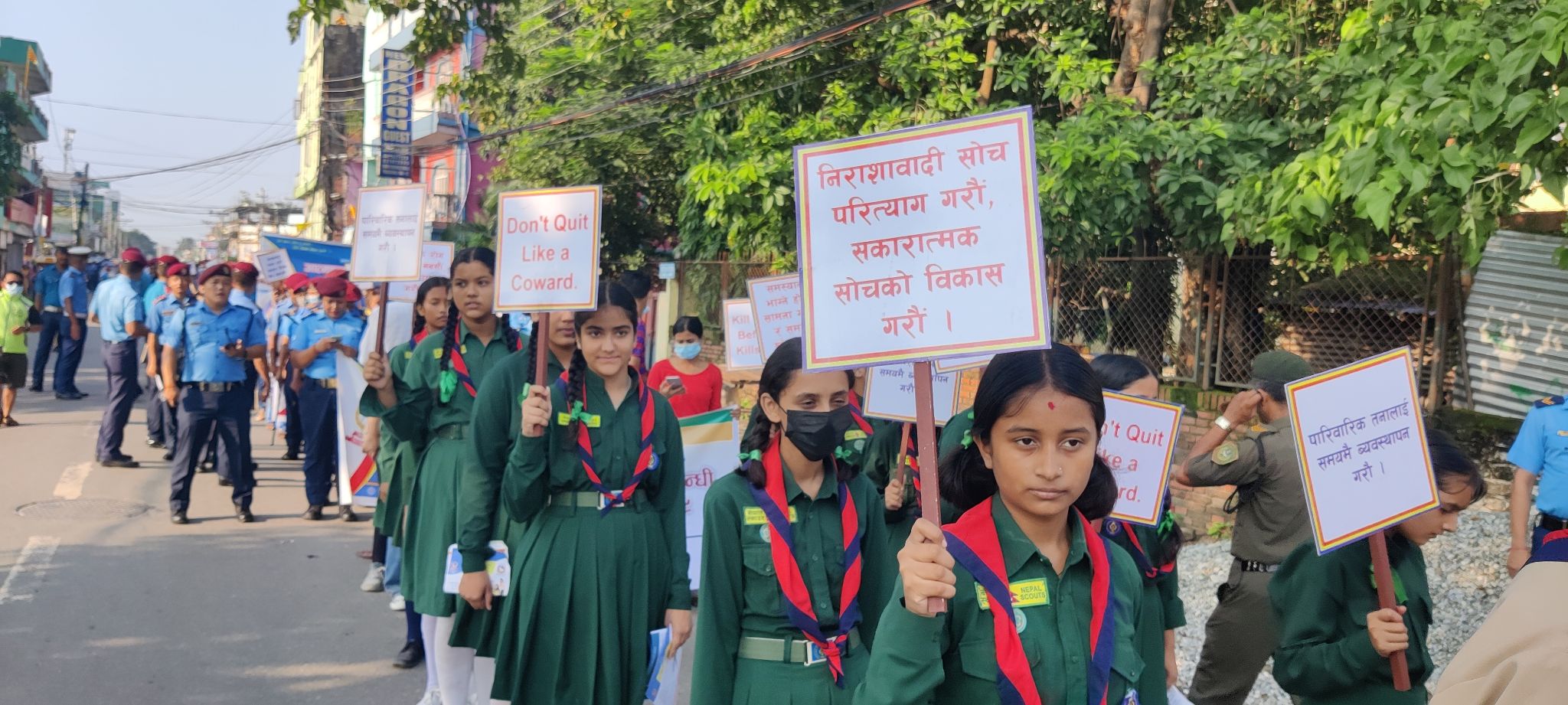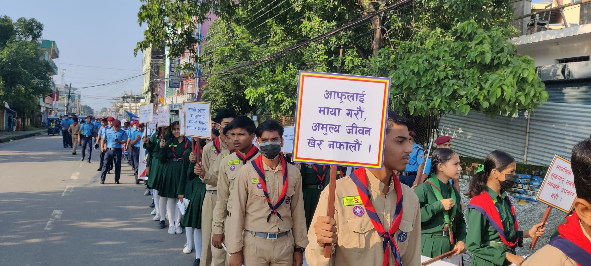 आफूलाई माया गरौँ, अमूल्य जीवन खेर नफालौँ, साहसी हुनुहोस्, बाँचुनहोस र आफ्नो समस्या समाधान गर्नुहोस्, आत्महत्या गर्नु पाप हो लगायतको प्ले काट बोकेर ¥यालीमा सहभागी भएका थिए ।