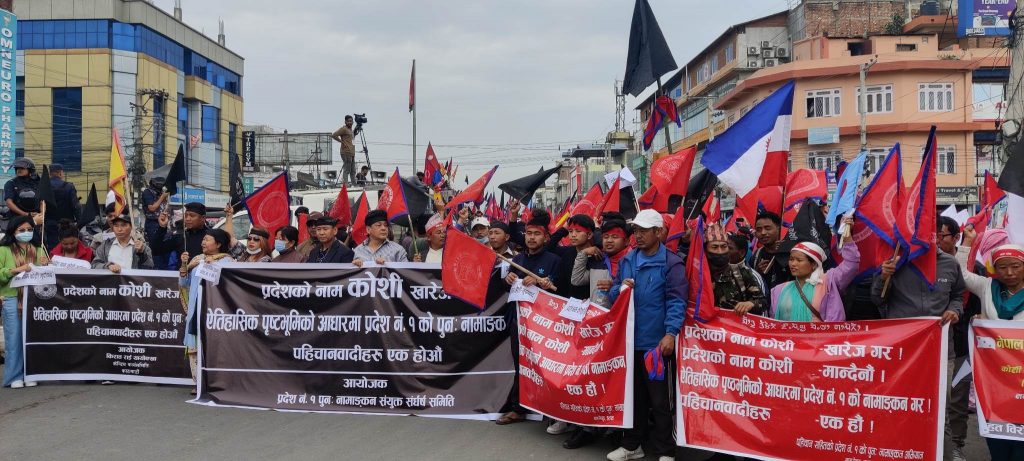 प्रदेश नं. १ पुनः नामकरण संयुक्त संघर्ष समितिको आयोजनामा महेन्द्रचोकमा दिउँसो १ बजेदेखि प्रदर्शन सुरु भएको छ । आजको प्रदर्शनमा माओवादी नेता गोपाल किराती, लिम्बुवानका नेता तथा पहिचान पक्षधरहरू कुमार लिङ्देन, सञ्जुहाङ पालुङ्वा, प्रेम एक्तेन, ज्ञानबहादुर राई, डकेन्द्रसिंह थेगिम, गेल्जे लामा शेर्पा, आङ्दावा शेर्पा, दिलराम राई, मिशेकहाङ्ग थाम्सुहाङलगायतले सम्बोधन गर्ने बताइएको छ ।