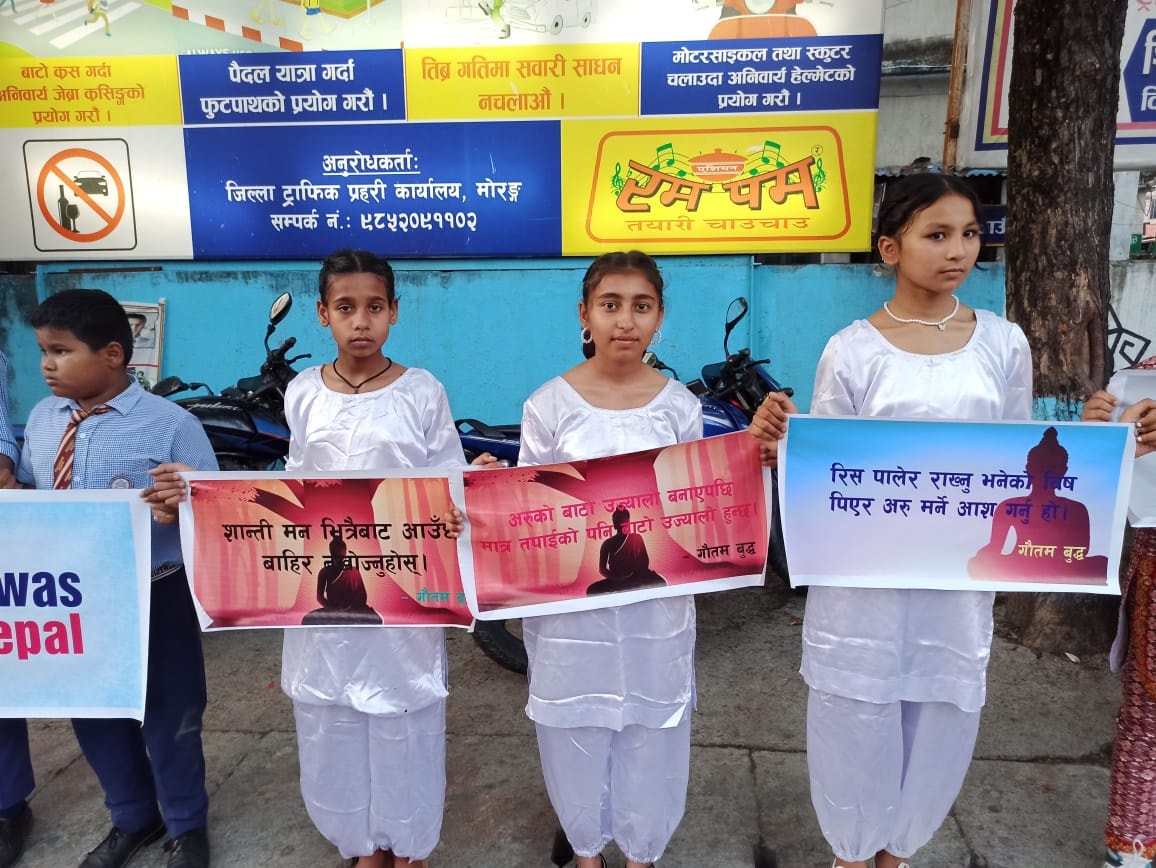 शुक्रबार साझ पूर्वाञ्चल विद्या सदनका विद्यार्थीहरुले गौतम बुद्ध नेपालमा जन्मिएको हो भन्ने सन्देश दिएका थिए । गौतम बुद्ध नेपालमा जन्मिएको हो भन्ने सन्देश दिन विद्यार्थीहरुले बुद्धका विचारको अनुसरण गरे ब्यक्ति, परिवार, समाज, राष्ट्र र सम्पुर्ण जगतकै कल्याण हुने कुरालाई दर्शाउन बुद्ध जयन्तीको अवसर पारेर पूर्वाञ्चल विद्या सदनका विद्यार्थीहरुले ट्राफिक चोकमा बुद्धका विचार सहितको प्लेकार्ड प्रदर्शन गरे ।