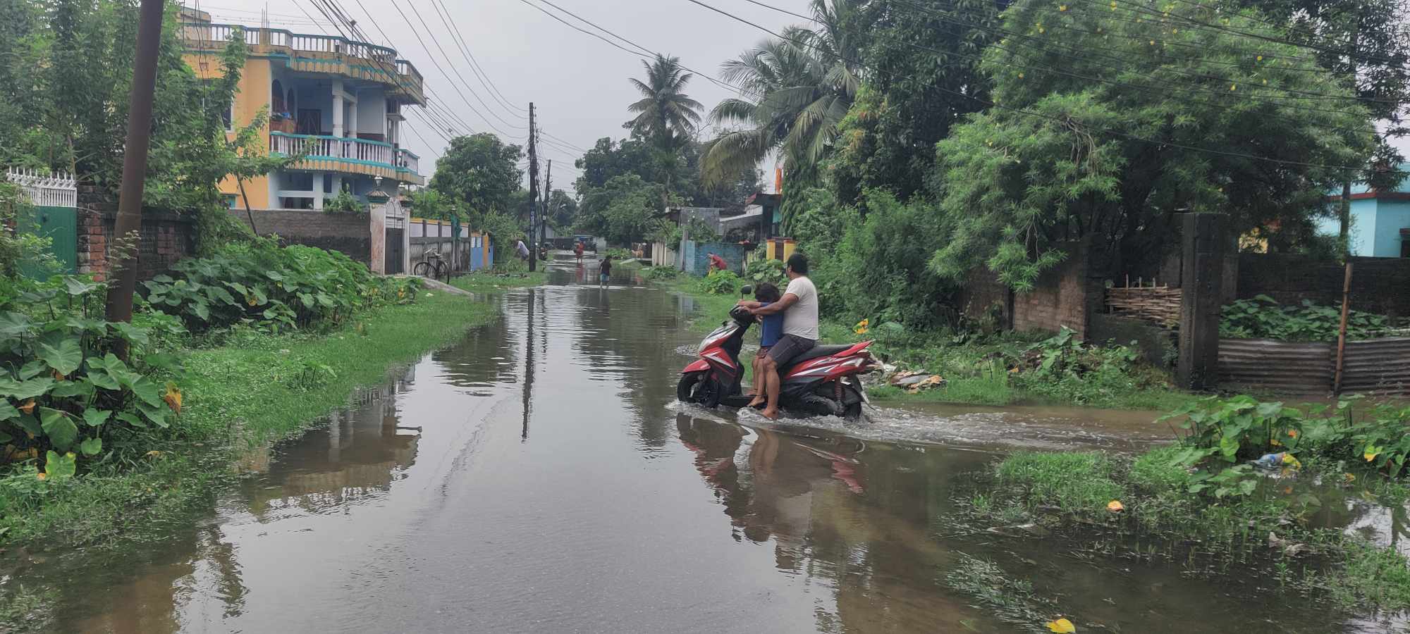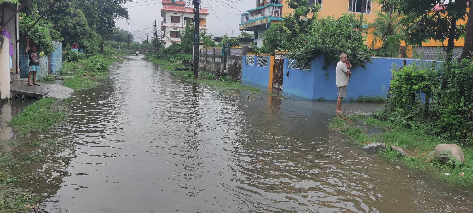 विराटनगर १५ र १६ नम्बर वडाका सडक र घरहरु जलमग्न भएका छन् । कतै नाली पुरिएका कारण सडकमा पानी जमेको छ भने कतै खाल्डाखुल्डीमा पानी जमेको छ ।
