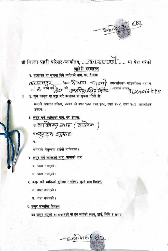 उजुरीकर्तामा नेविसंघ केन्द्रीय सदस्यहरू मनीषजंग थापा, अशोकसिंह विष्ट, विजय शाह छन् । उनीहरुले २४ घण्टाभित्र उजुरी गर्दा गरी बालेन र सुदनलाई पक्राउ गरी अनुसन्धानको माग राखेका छन् ।