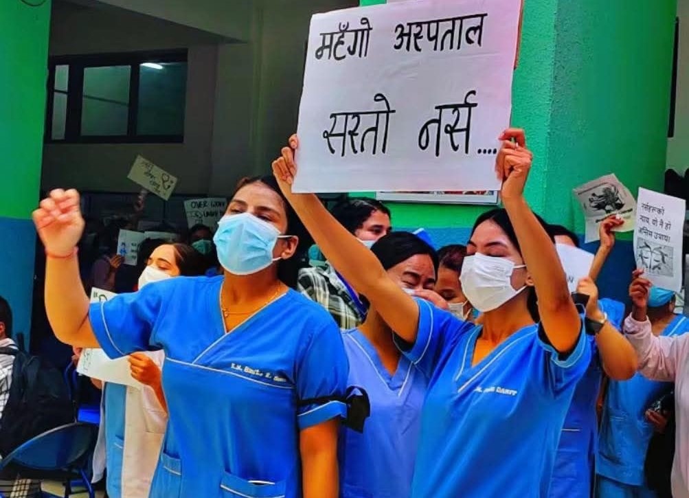 सरकारले तोकेको न्यूनतम ३४ हजार रुपैयाँ तलबको सट्टा मासिक १२ हजारमा चित्त बुझाउन बाध्य उनीहरूको पीडा अब सडकमा पोखिन थालेको छ। निजी अस्पतालमा कार्यरत स्वास्थ्यकर्मीका लागि चाडपर्व खुसीभन्दा बढी पीडा बनेर आउँछ। ‘हाम्रोमा दशैंमा बिदा लिनेले तिहारमा पाउँदैन, तिहारमा लिनेले दशैंमा पाउँदैन। कतिपय स्टाफले त दुवै चाडमा छुट्टी पाएका छैनन्,’ एक स्टाफ नर्स भन्छिन् ।
