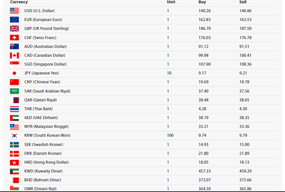 अमेरिकी डलर एकको खरिददर १४० रुपैयाँ २६ पैसा र बिक्रीदर १४० रुपैयाँ ८६ पैसा निर्धारण गरिएको छ।