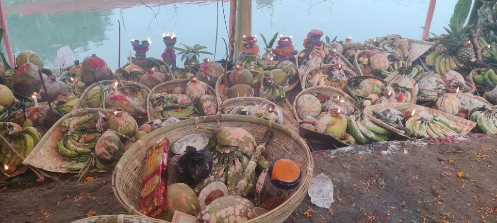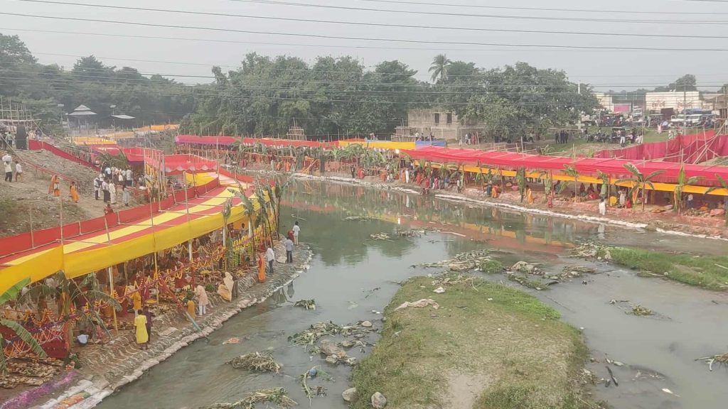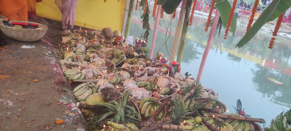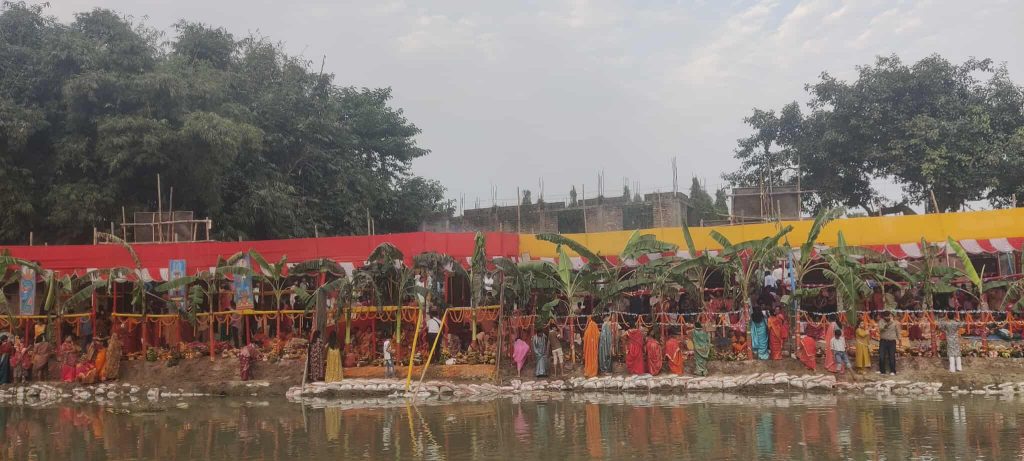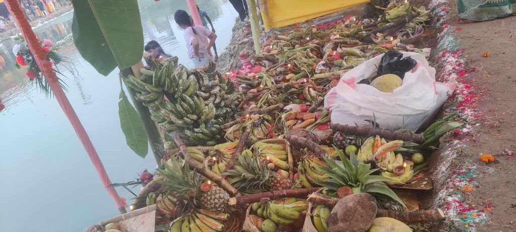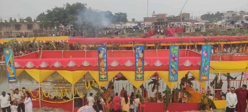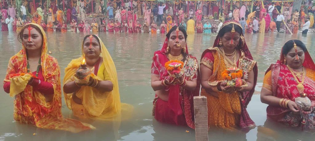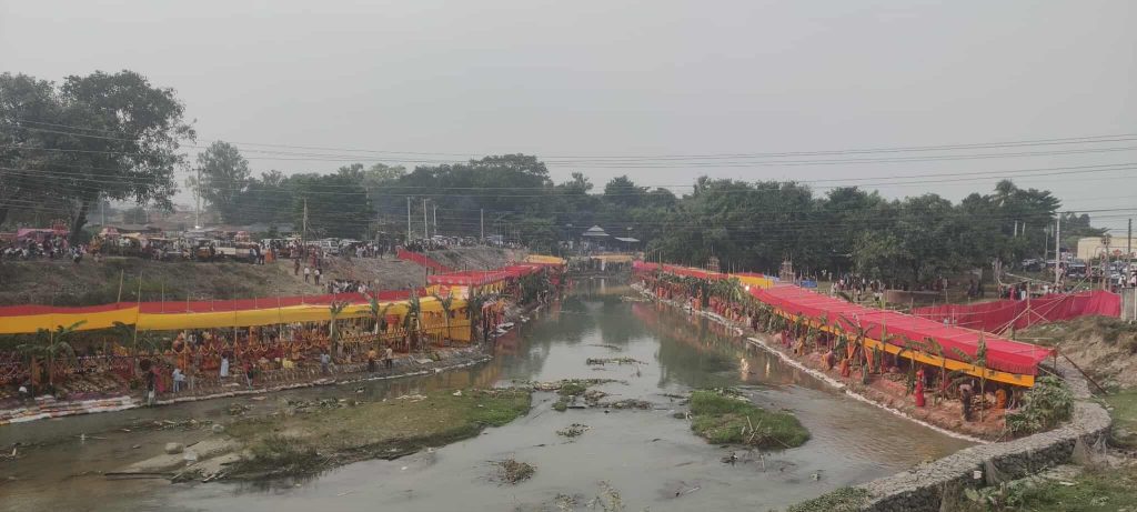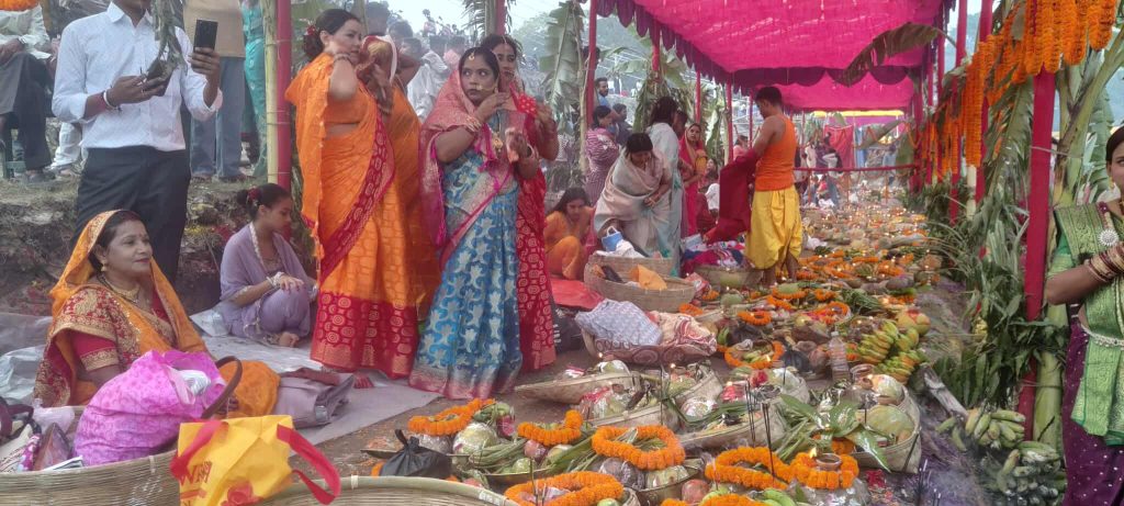 विराटनगर । सूर्य उपासनाको महापर्व छठको मुख्य दिन आज विराटनगरका विभिन्न खोला तथा नहर किनारमा श्रद्धालुहरूको घुइँचो लागेको छ । छठ पर्व मनाउनका लागि व्रत बसेका व्रतालुहरू पूजा सामग्रीसहित खोला र नहरका किनारमा भेला भएका छन् ।दिनभरि निराहार व्रत बसेका व्रतालुहरूले आज साँझ अस्ताउँदो सूर्यलाई अर्घ्य दिँदैछन् । विराटनगरको केसलिया, सिंघिया लगायतका खोला किनारमा बनाइएका घाटहरूमा भक्तजनको उल्लेख्य उपस्थिति रहेको छ ।