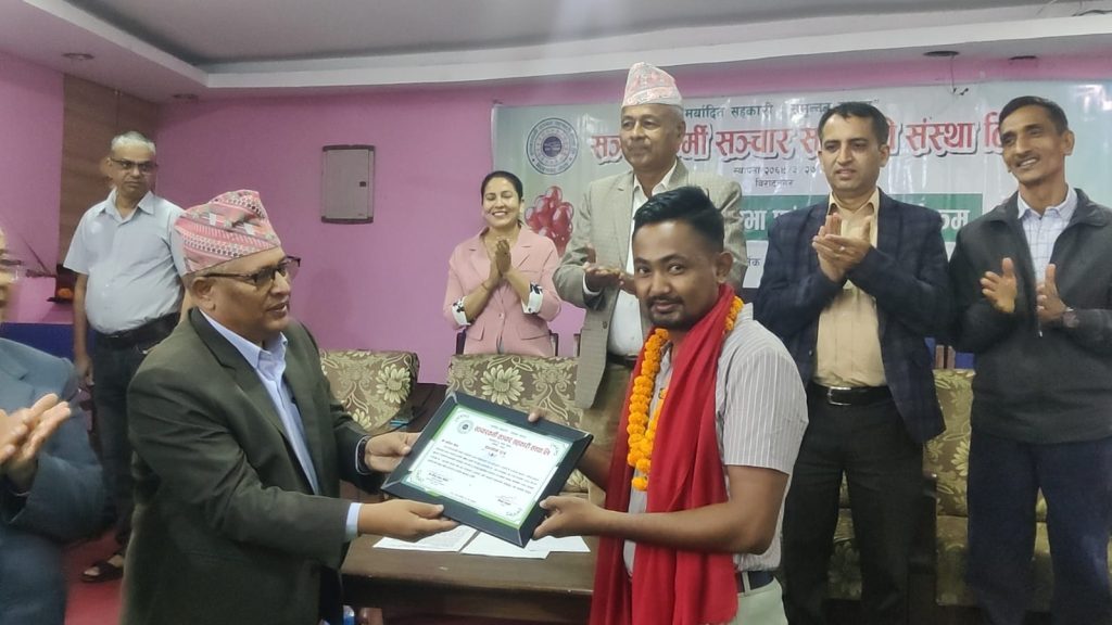 विराटनगर । सञ्चारकर्मी सञ्चार सहकारी संस्थाले आफ्नो १४ औं वार्षिक साधारणसभाको अवसरमा विभिन्न क्षेत्रमा योगदान पुर्याएका ९ जना सदस्यलाई सम्मान तथा पुरस्कृत गरेको छ ।