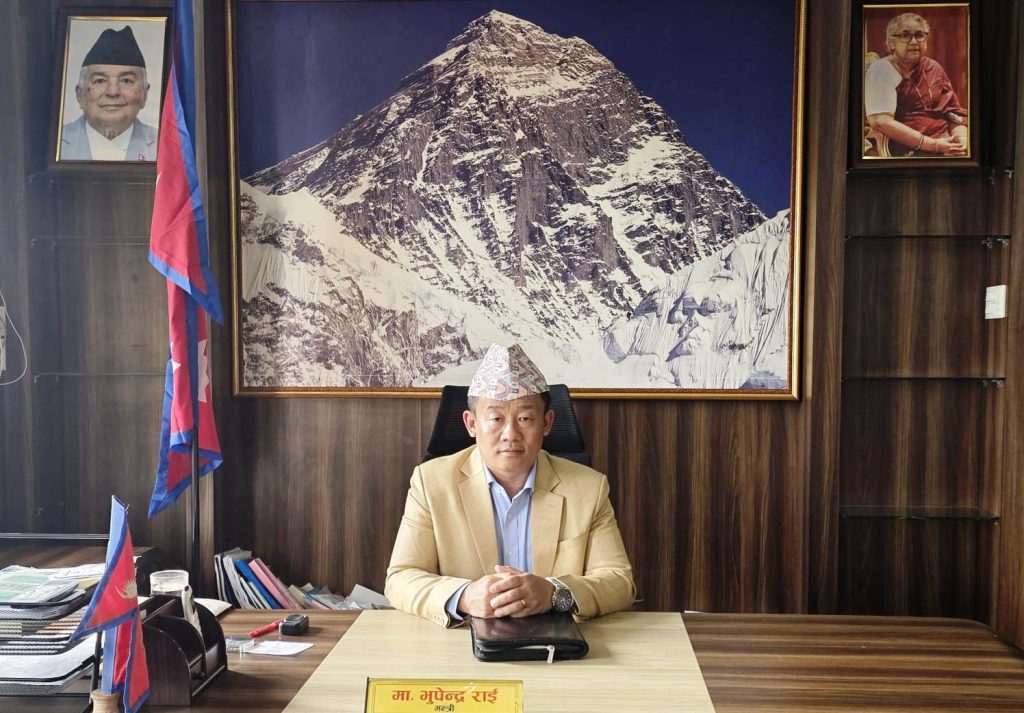 कोशी सरकारका नेपाली कांग्रेसबाट भौतिक पूर्वाधार विकास मन्त्री बनेका भूपेन्द्र राईको कार्यकक्षमा भने राष्ट्रपति पौडेल र प्रधानमन्त्री कार्की दुबैको तस्वीर राखिएको छ।
