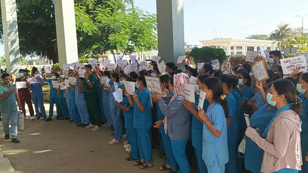 ‘हाम्रा मागहरूप्रति अस्पताल प्रशासनले कुनै सुनुवाइ गरेन, त्यसैले हामी फेरि आन्दोलनमा होमिएका छौँ,’ देवले भनिन्, ‘अहिले आकस्मिक र आइसियूबाहेकका सबै सेवामा कार्यरत स्वास्थ्यकर्मी आन्दोलनमा छौँ । माग पूरा नभएसम्म यो आन्दोलन रोकिने छैन ।’