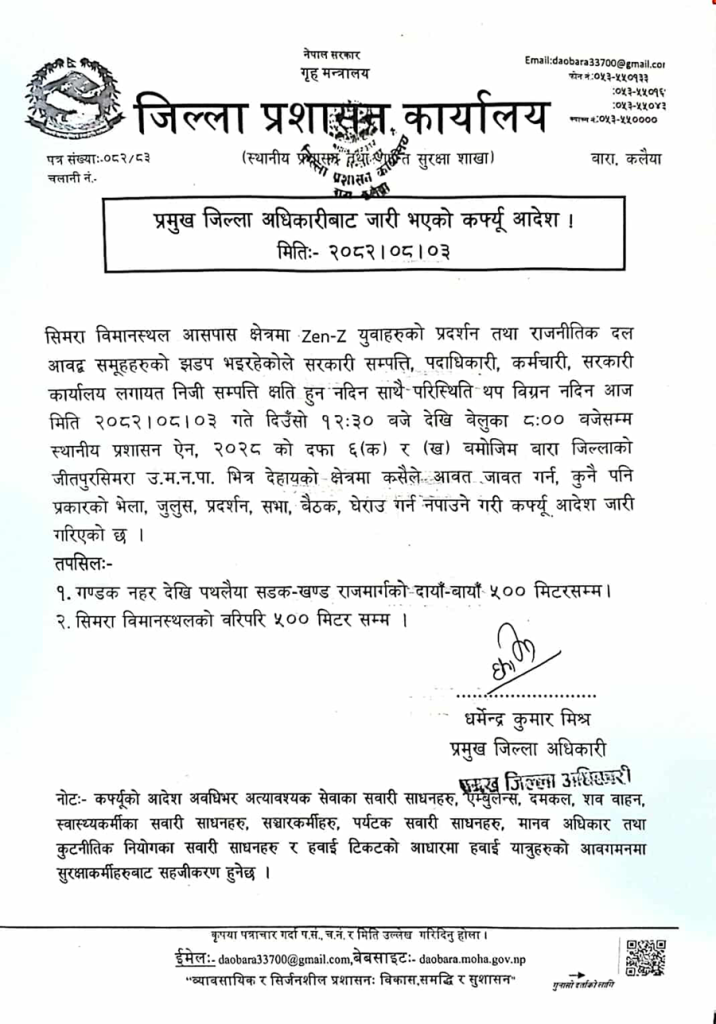 सिमरामा एमाले नेताहरुलाई आउन नदिने भन्दै अराजक प्रदर्शनपछि कर्फ्यु