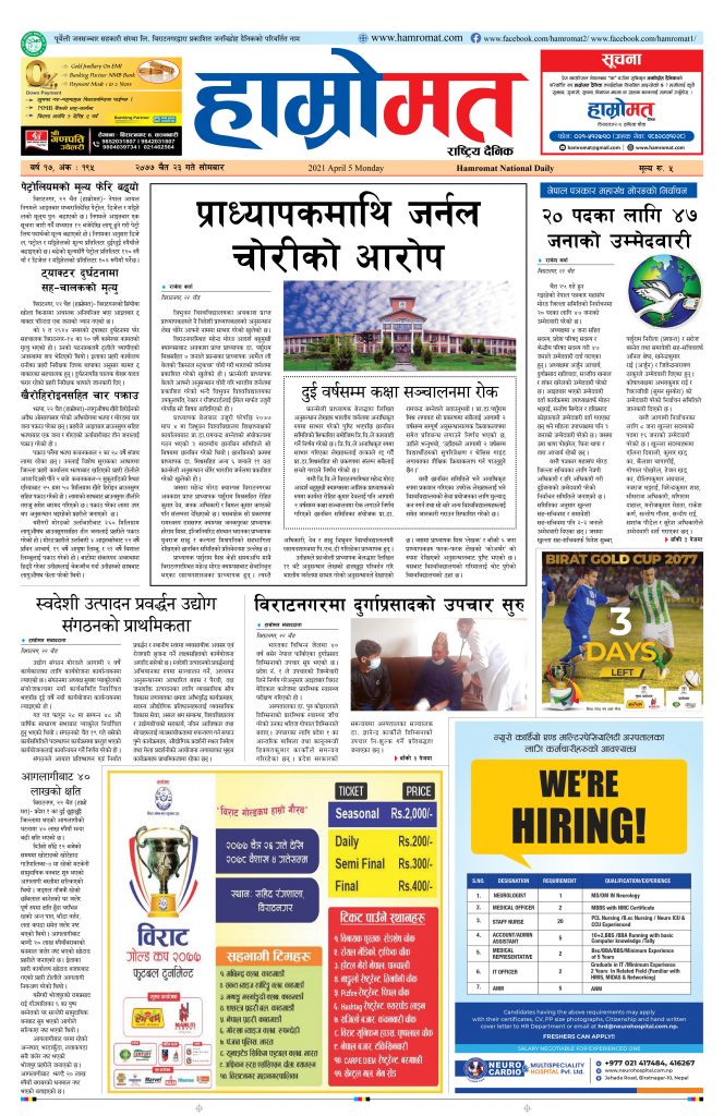 हाम्रोमत दैनिक, २०७७ चैत २३